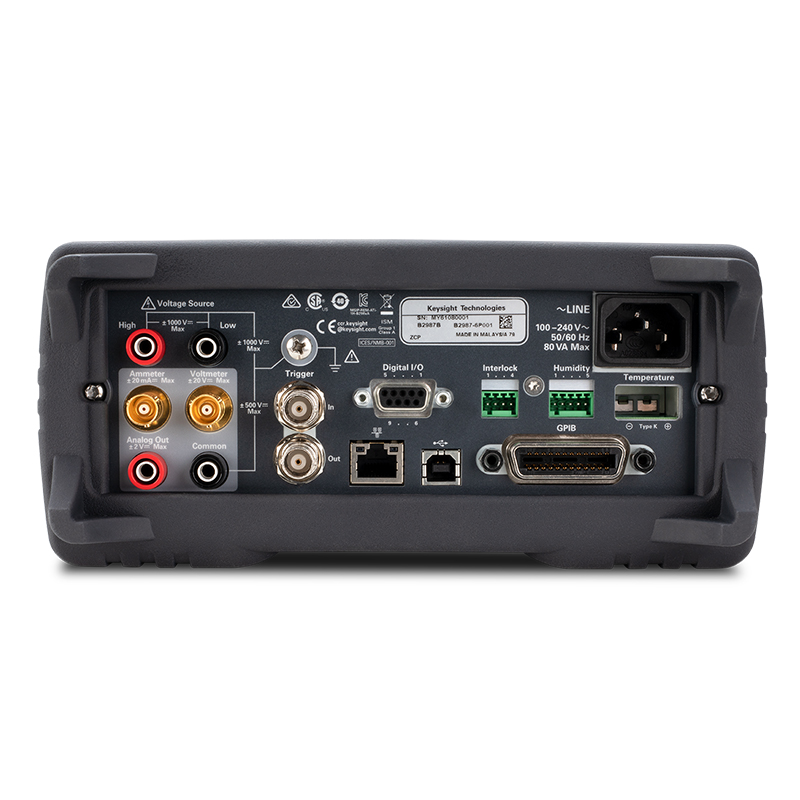B2987B 静电计/高阻表是一款图形界面静电计,具有 0.01 fA(0.01 x 10-15 A)的分辨率,可帮助您信心十足地测量小电流和最高 10 PΩ(10 x 1015 Ω)的大电阻。 此外,采用电池供电可以避免交流电源线的噪声影响关键测量的准确度。 它拥有 4.3 英寸 LCD 彩色显示屏和图形用户界面,不仅可显示数值信息,还可提供趋势图和直方图格式的数据显示。 这些前面板功能让您无需依赖计算机,即可捕获瞬态特性,快速执行统计分析。 现成的设置完整性检查软件选件可以帮助您比较各种线缆连接和夹具布置方式的噪声电平,以便隔离外部噪声源。