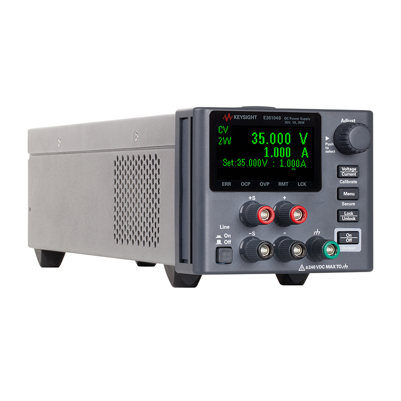 Keysight E36100B 系列基础型直流电源拥有紧凑的结构(2U,¼ 机架)、可视角度很宽的高对比度 OLED 显示屏、现代 USB 和 LAN(LXI Core)连通性。高精度小电流测量功能可以满足苛刻的测量要求。内置过压和过流保护功能可以为被测器件提供良好的保护,同时内置的过温保护功能还确保了电源自身的安全。您能够通过多种方式将电源快速连接到仪器,例如直观的前面板界面、网络浏览器界面、SCPI 或 IVI 程序、Keysight IO 程序库,或者是在计算机或移动设备上运行的 BenchVue 应用软件。选择最符合您需求的型号:五种型号提供高达 5 A 的电流或 100 V 的电压。