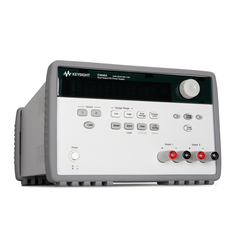 E3646A 60 W 双路输出台式电源提供了高低两个电压输出范围,可以灵活选择。 如果选择低电压输出范围,那么电源能够输出更大电流。 E3640 系列包括单路输出和双路输出型号――可通过 GPIB 或 RS232 接口轻松地自动执行测试。