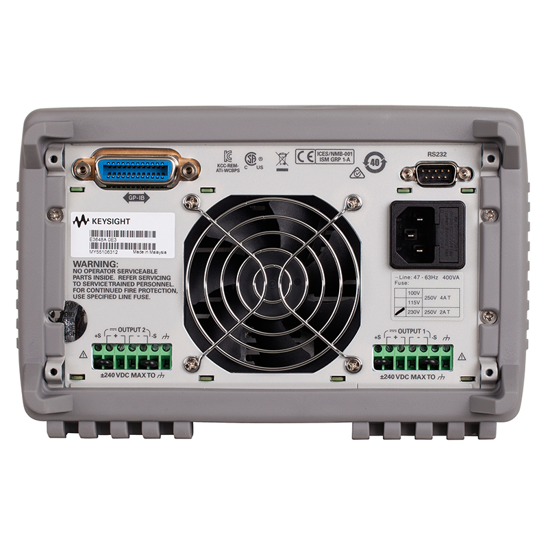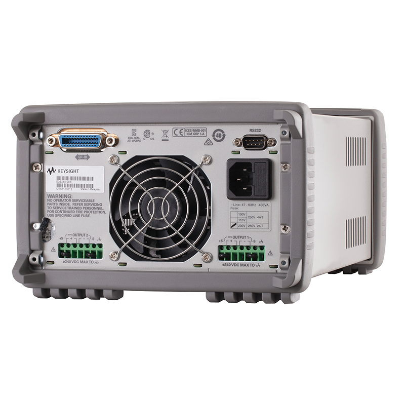 E3648A 100 W 双路输出台式电源提供了高低两个电压输出范围,可以灵活选择。 如果选择低电压输出范围,那么电源能够输出更大电流。 E3640 系列包括单路输出和双路输出型号――可通过 GPIB 或 RS232 接口自动执行测试。