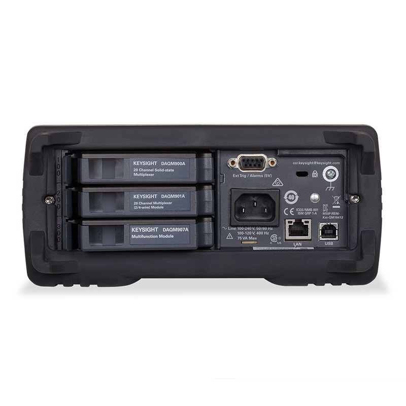 - 六位半(22 比特)内置数字万用表与新的固态多路复用器模块结合使用,每秒可以扫描多达 450 个通道
