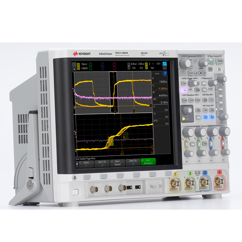 4000 X 系列拥有一系列引以为傲的配置,包括采用了电容触摸屏技术的 12.1 英寸显示屏、InfiniiScan 区域触摸触发、100 万波形/秒捕获率、MegaZoom IV 智能存储器技术和标配分段存储器。
