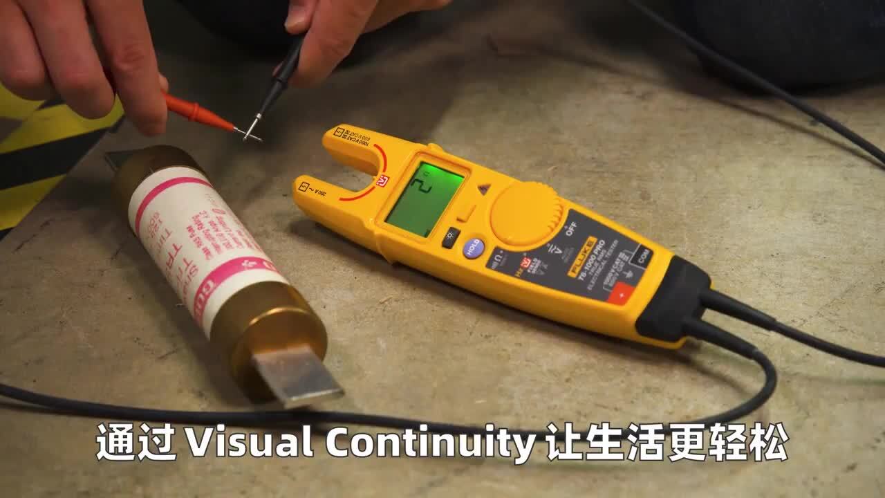 - Visual Continuity™——如果检查通断性,则在蜂鸣器鸣响时屏幕也会自动变绿。这一功能在那些因声音太大而无法听到蜂鸣器鸣响、佩戴护耳器或因光线太暗而难以看清屏幕的情况下非常有用。Visual Continuity 让通断性检查的结果变得可靠。