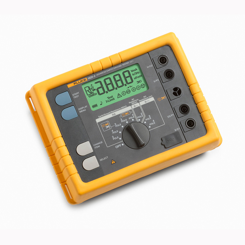 Fluke 1625-2 接地电阻测试仪能够通过 USB 端口存储和下载数据。 一流的配件有助于简化和加快测试时间。