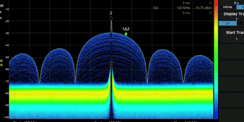 SSA3000X-R实时频谱分析仪可设定频率模板触发功能,无缝采集分析被测信号(带宽信号),适用于观测分析小信号和跳频信号。