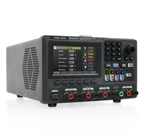 | SPD4121X | 总功率:285 W ; 输出: CH1: 15V/1.5A CH2: 12V/10A CH3: 12V/10A CH4: 15V/1.5A | 4.3英寸真彩TFT-LCD 五位电压显示,五位电流显示 | 1 mV,1 mA | 电压 ±(0.03% of reading+10)mV 电流 ±(0.3% of reading+10)mA | 电压 ±(0.03% of reading+10)mV 电流 ±(0.3% of reading+10)mA | ¥5,880 |