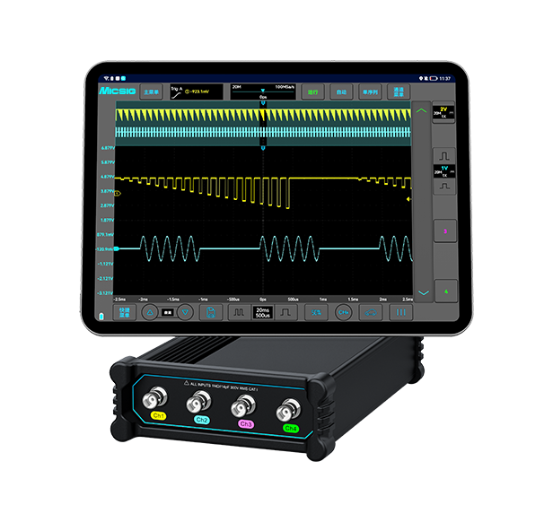 Micsig示波器VTO系列是一款超经济型便携分体式示波器,结构小巧,机身轻薄,内置锂电池。 其带宽达200MHz,采样率 1GSa/s,存储深度达50Mpts,4 个模拟通道。可与任何安卓设备相连接(包括平板、智能手机、PC电脑等)。人性化的UI设计、丰富的测量项,给您带来丰富全新的示波器使用体验。