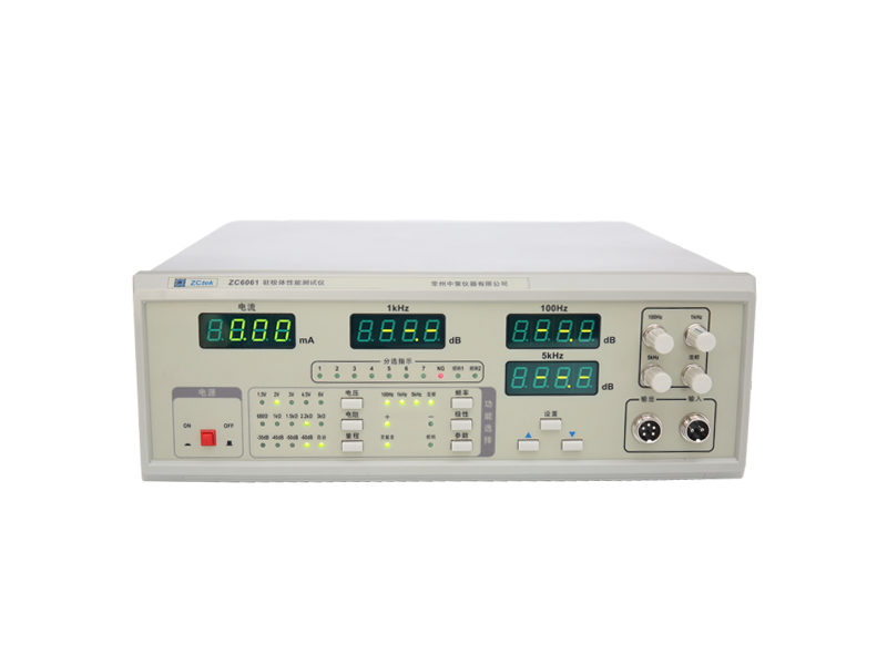ZC6061/ZC6062系列驻体传声器测试仪,采用先进的数字电路设计技术,主要用于生产线上测量驻体传声器在100Hz、1kHz、5kHz频率点上的灵敏度,以便按灵敏度检测分档、配对。100Hz、1kHz、5kHz信号分别由三个指示器指示,可以同时指示或分别指示。100Hz及5kHz既可指示灵敏度,也可指示它们相对于1kHz的频响,当频响超过设定值时,分别有声音和指示灯报警。仪器操作方便,读数快速准确,测试效率高,还具有内部校准、声校准功能。特别适用于驻体传声器生产线和电话机生产厂家外购件检验使用,并且具有HANDLER接口和RS-232接口选件,可连接自动测试机进行快速测试。