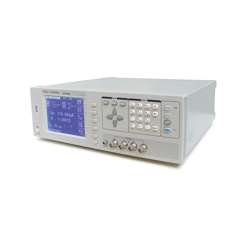 TH2826 系列元件测试仪是符合 LXI 标准的新一代阻抗测试仪器,其 0.1% 的基本精度、 20Hz ~ 5MHz 的频率范围可以满足元件与材料的测量要求,可测量低 ESR 电容器和高 Q 电感器的测量。可用于诸如传声器、谐振器、电感器、陶瓷电容器、液晶显示器、变容二极管、变压器等进行诸多电气性能的分析。