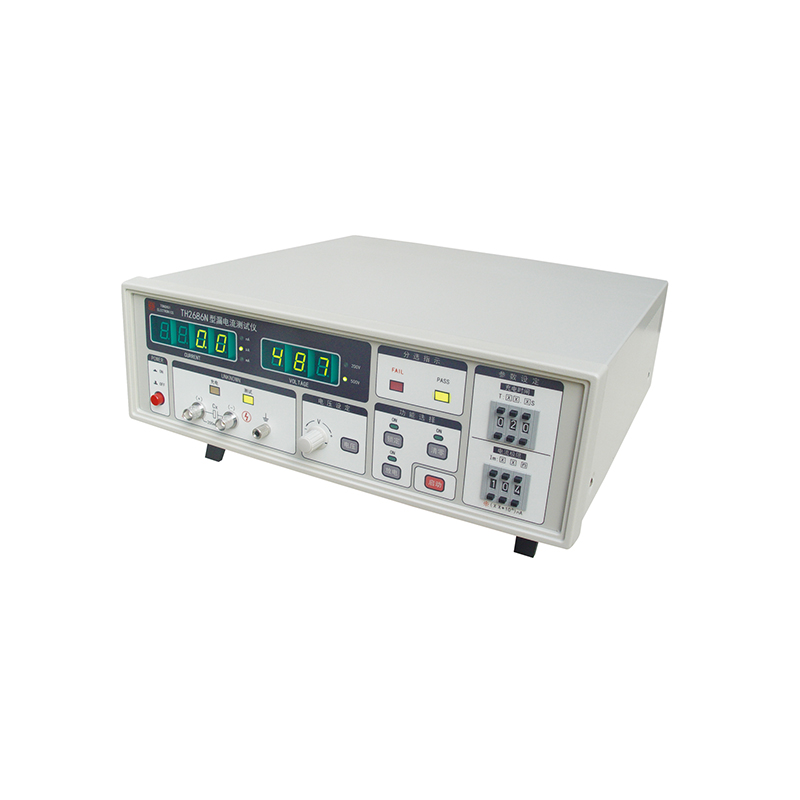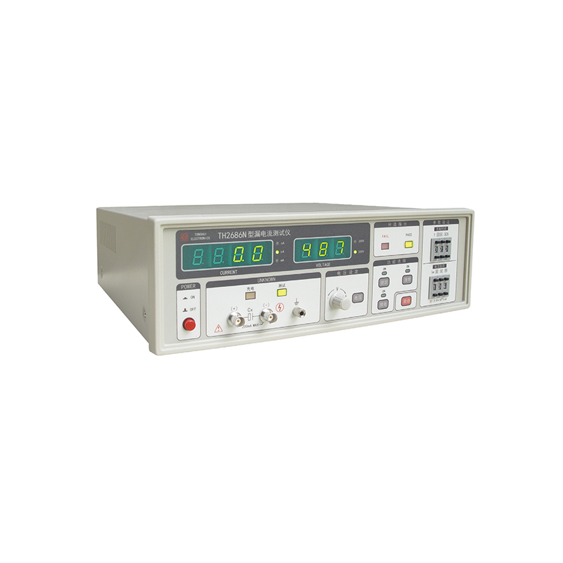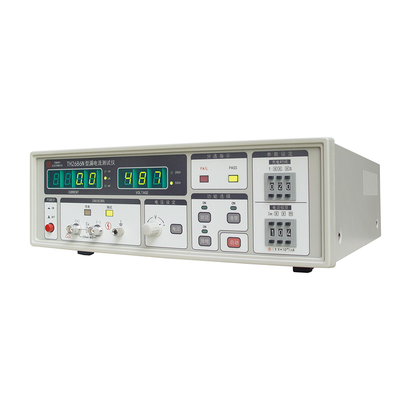 TH2686型电解电容漏电流测试仪是一种以微处理技术为基础的自动测量电解电容漏电流参数的测试仪器。测试电压连续可调,电压三位数字显示,电流三位半数字显示,充电-测试自动转换,最大测试电压500V,最大测试电流20mA,最大充电电流200mA,最长自动充电时间为99.9秒。仪器具有电流超限指示,测试速度快,操作方便,安全可靠等特点。适用于电解电容器生产线质量保证、进货检验等要求。
