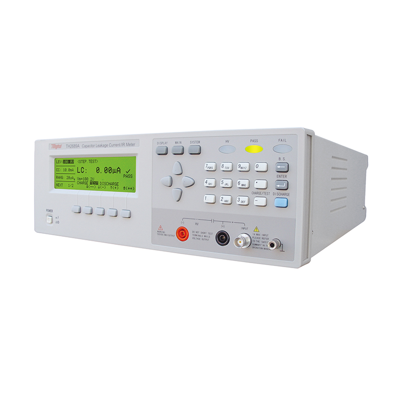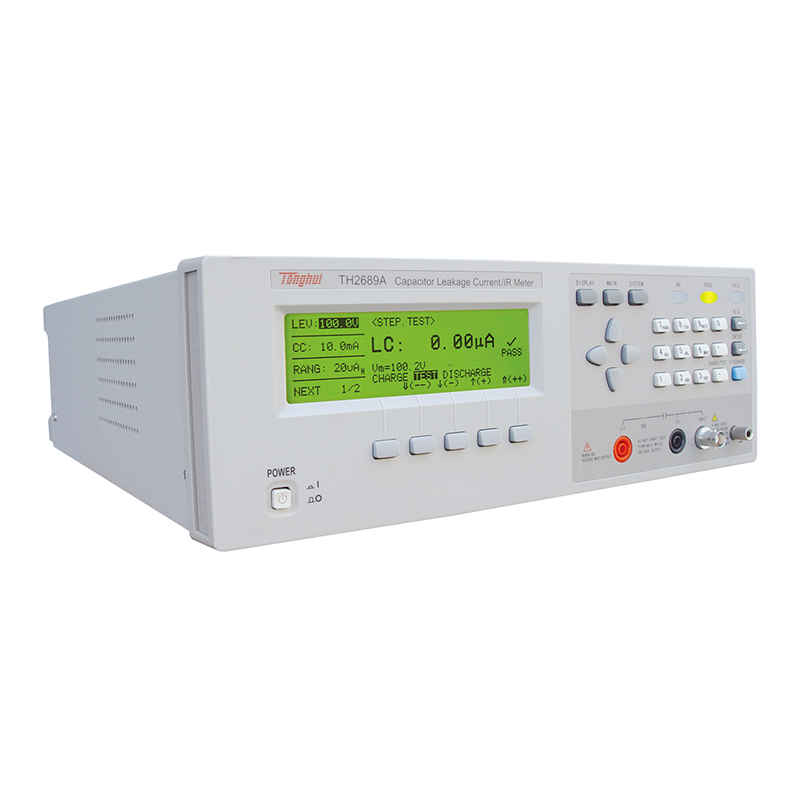 TH2689A型电容器漏电流/绝缘电阻测试仪分别提供最大测试电压:500V,充电电流0.5mA~500mA(>100V时由最大输出功率50W限制)。主要应用于电解电容/陶瓷电容等漏电流,绝缘电阻及铝电解电容阳极箔耐压测试。也可应用突波吸收器,齐纳二极管,氖灯管等动作电压确认和漏电流测试。标配了RS232、Handler接口,可选购的GPIB接口,以及稳定快速的测量,使TH2689不仅可以应用于进货检验,更可应用于自动化生产测试等等。