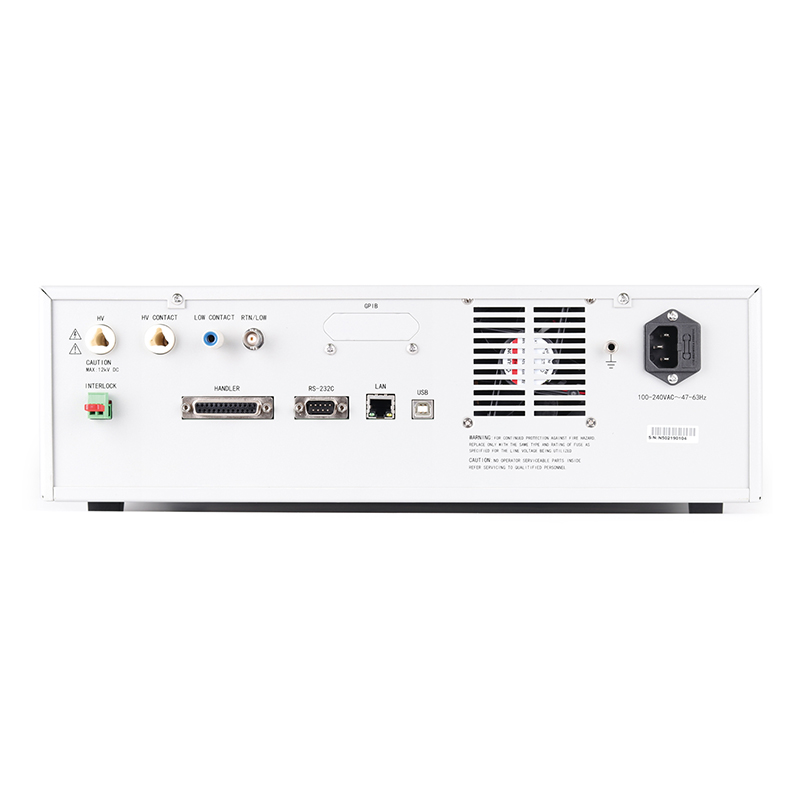 仪器标配HANDLER(机械手接口)、RS-232、LAN、USB DEVICE、USB HOST;选配GPIB接口,无论是连接上位机、PLC、自动化系统都得心应手。一键截屏、一键记录功能方便将测试结果保存至U盘可定制上位机软件,操作更灵活,记录更方便。
