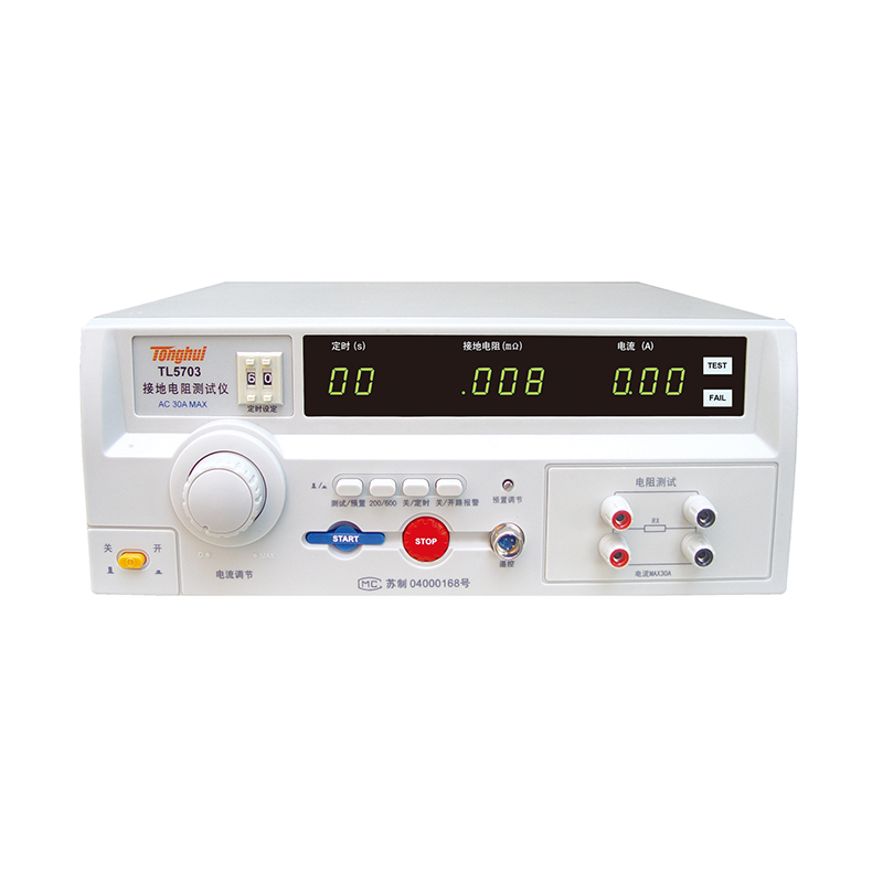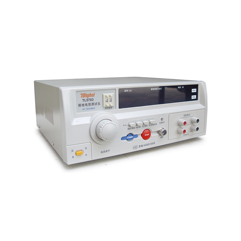 TL5703 型接地电阻测试仪是按照GB﹑IEC﹑ISO﹑BS﹑UL﹑JIS 等国际国内的安全标准而设计的,接地电阻的指标是衡量各种电气设备安全性能的重要指标之一。它是在大电流(25A或10A)的情况下对接地回路的电阻进行测量,同时也是对接地回路承受大电流指标的测试,以避免在绝缘性能下降(或损坏)时对人身的伤害。本测试仪是为满足以上要求为生产车间及实验部门提供高性能测试仪器而开发生产的。本仪器对供电电压要求不高,测量精度高,速度快,使用方便,特别适用于要求高的实验室和自动检测线上使用。断路报警选择功能(即路报警)可以方便地知道仪器是否工作在正常测试状态,用户可以根据实际需要选择是否需要此项功能。本仪器采用三位半数字显示,读数方便,采用优化设计,整机具有极高的可靠性和稳定性。