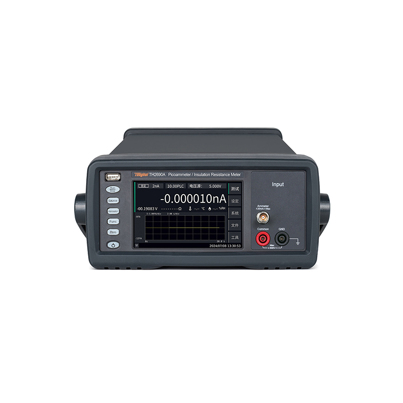 TH2690系列飞安表/皮安表/静电计/高阻计提供了行业领先的测量功能。飞安表/静电计具有0.01fA(10-17A)最小电流分辨率,可满足大部分场景的微弱电流测量需求。高阻计内置的1000V电压源支持测量高达1000PΩ(1018Ω)的电阻。