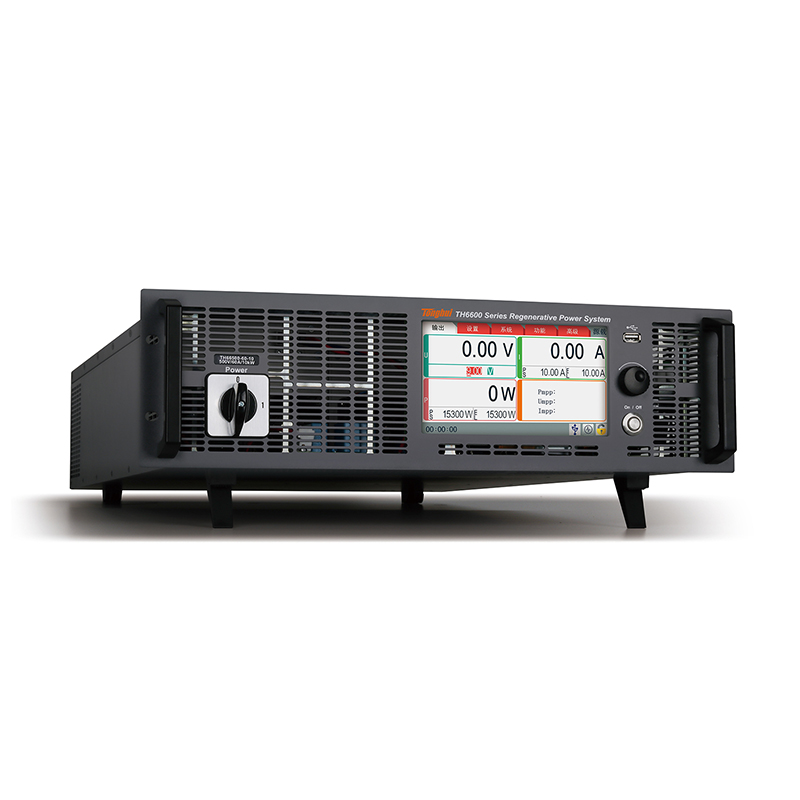 TH6600系列双向回馈式大功率直流电源输出和吸收电流时可快速无缝切换,有效避免电压或电流过冲,适用于电池、电池封装以及电池保护板等储能设备测试