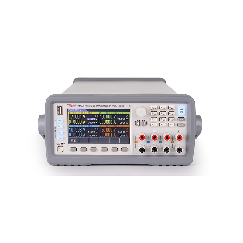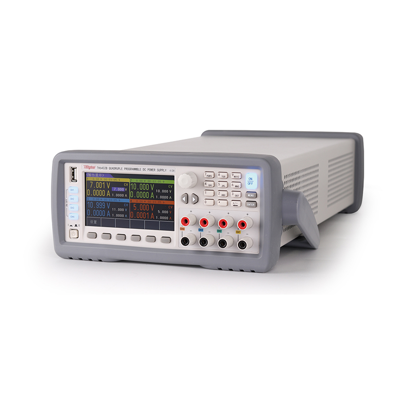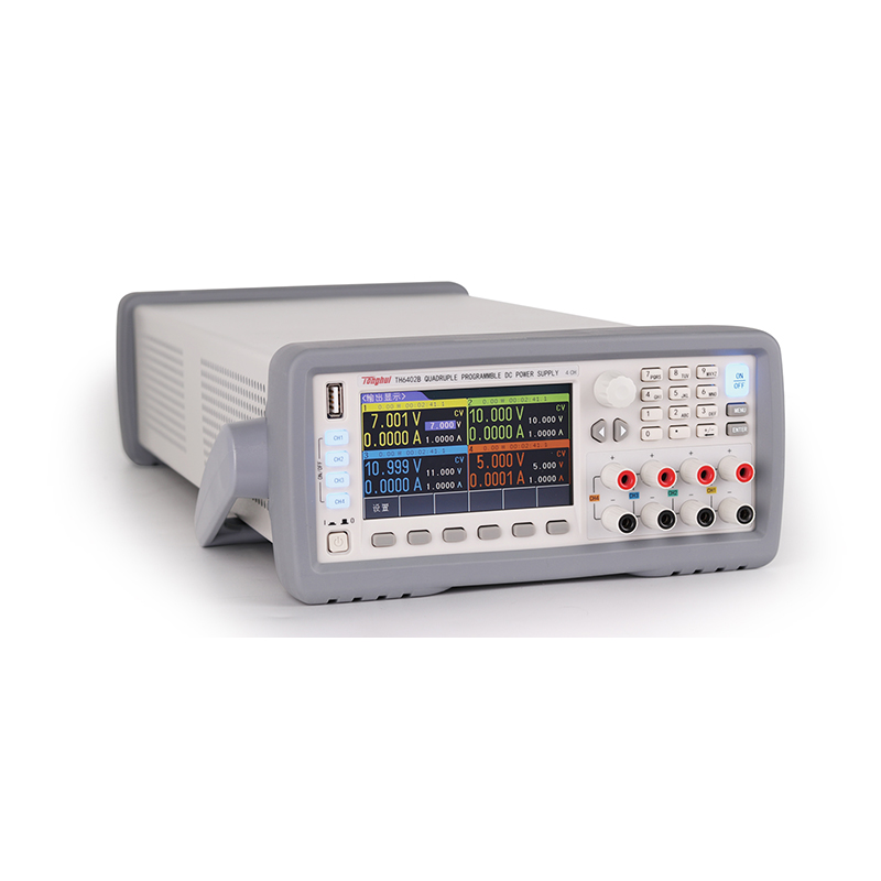 TH6400系列多路输出可编程直流电源涵盖了5个型号(单个通道功率范围5W-180W),其中TH6402B为4通道输出,其余型号为3通道输出。全系列电源具备通道间串、并联以及同步输出功能,并且所有通道的输出参数同屏显示,使用起来更加方便、直观。
