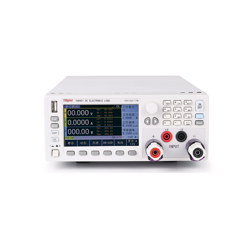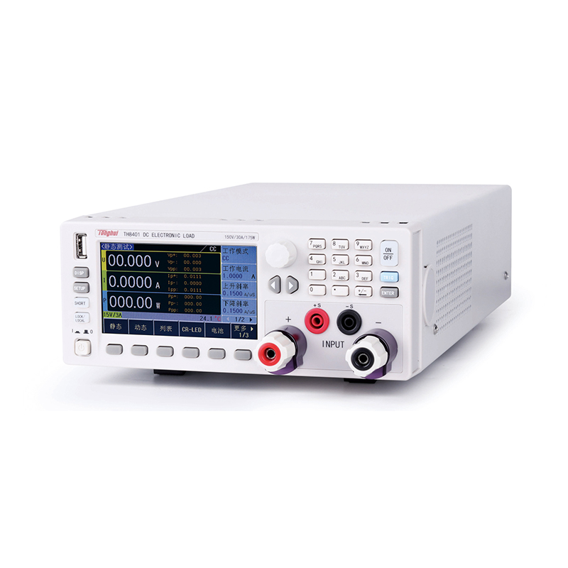 TH8400系列是一款高精度、高智能、易操作的直流电子负载。该系列仪器集合了多种测试功能,性能优越,并且采用液晶屏显示,显示明了,操作菜单化,快捷方便,能很好的适应生产现场快速操作需要以及实验室高精确度高稳定度的需要。
