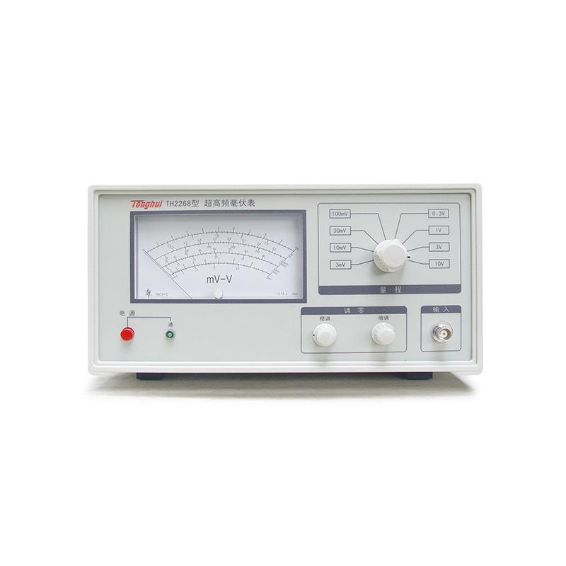 ■ TH2268超高频毫伏表主要用于工厂、部队、学校、科研实验室测量1kHz-1200MHz频率范围的正弦波有效值电压。仪器采用检波放大电路,具有良好的超高频特性,它解决了从低频到超高频电压的过渡测量。