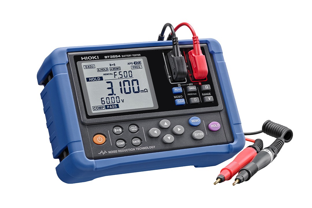 | 温度测量精度 | 测量范围 -10°C~60°C, 最大显示 60.0°C, 分辨率 0.1°C, 测量精度※ ±1.0°C ※当使用夹型温度传感器 9460 BT3554-50单体的精度:模拟输入时:需使用附带±0.5°C温度传感器夹型测试线9460 ※使用温度探头9451时,请加算±0.5°C(电缆长度1.5m) ※使用温度探头9451s时,请加算±0.5°C(电缆长度0.1m) BT3554-50单体的精度:模拟输入时:±0.5°C |