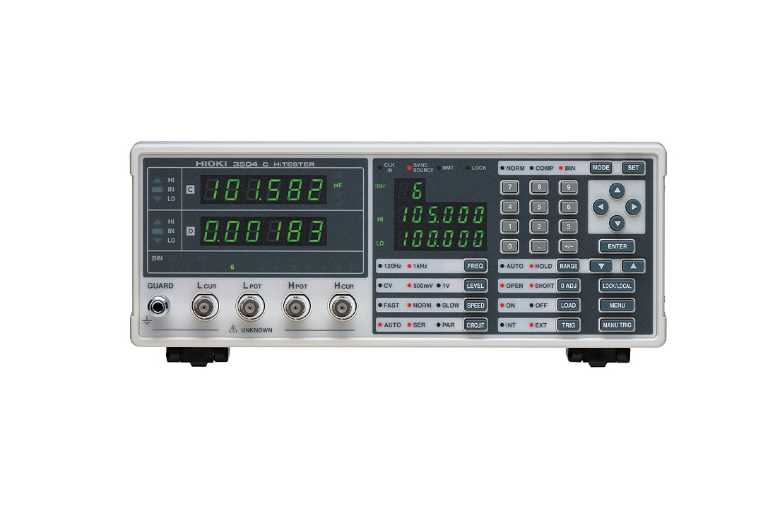 | 功能 | BIN分类测量 (3504-40除外), 触发同步输出, 测量条件记忆, 测量值的比较功能, 平均值功能, Low-C筛选功能, 振动功能, 控制用输出输入 (EXT. I/O), RS-232C接口(标配), GP-IB接口(3504-40除外) |