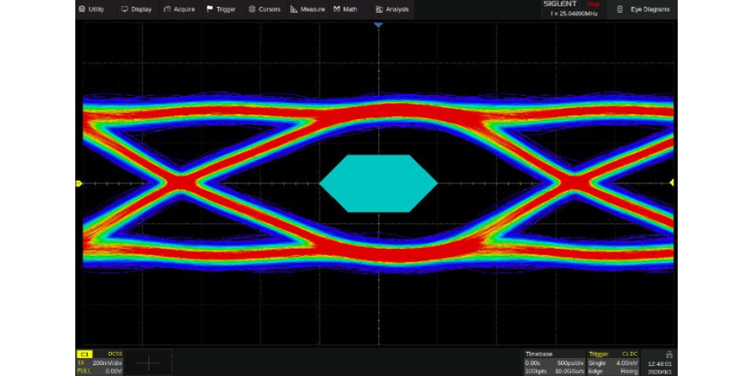 - 眼图分析是高速系统信号完整性分析的核心。SDS6000L提供对数字信号进行眼图和抖动分析的功能,自动从串行数据中提取时钟用于重构眼图和进行抖动计算;