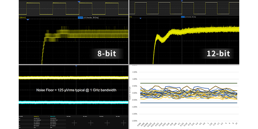 高分辨率示波器能有效提高信号测量精度。传统8-bit分辨率示波器的量化等级为256,而12-bit分辨率的量化等级为4096,这意味着测量电压为1V的信号,12-bit下可测得的最小信号幅度为1/4096V,而8-bit只有1/256V。12-bit分辨率可达到传统8-bit的16倍,这将信号的测量精度提升了一个量级。