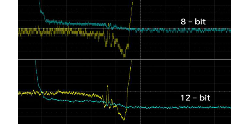 SDS3000X HD系列示波器全系采用12-bit高分辨率ADC,量化等级高达4096级,高分辨率模式下(ERES)可将分辨率提升至16-bit,配合垂直&水平放大功能,助力用户更完整清晰地观测到波形的细节。比如在LLC半桥式变换电路分析时,需要通过波形观察上管和下管的驱动信号之间存在的死区时间,12-bit示波器还原后的波形细节远比8-bit示波器要更清晰。