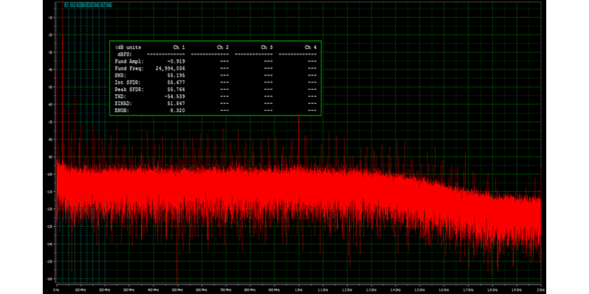 当高速ADC进行数据采集时,由于噪声和失真的影响,实际ADC的信噪失真比达不到其标称位数应达到的理想性能。一般情况下,示波器带宽越高,其内部噪声就越高。因为高频噪声会进入高带宽示波器内。由于ADC仅为示波器系统的一部分,不能独立使用,因此整个示波器系统的ENOB指标会更有意义。SDS3000X HD高达8.3~8.6-bit,时间误差、频率杂散都比较小,同时宽带噪声也比较低,能够有效保证测量的精准度。