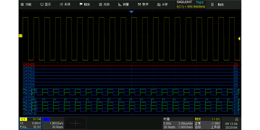 通过16路逻辑分析仪探头可为仪器增加16路数字通道,同时不影响其他测试功能,可以快速解决模数混合信号设计与分析等问题。