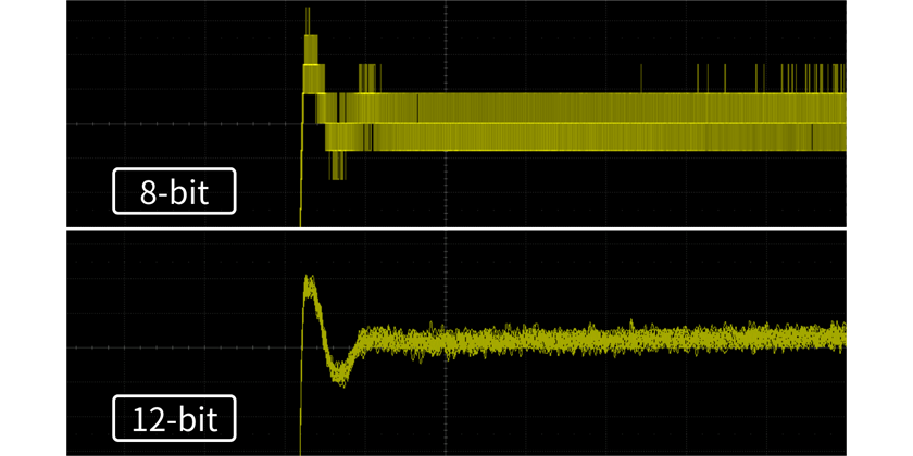 SDS1000X EDU采用了12位模数转换器,可实现4096量化等级,是传统8-bit示波器信号分辨能力的16倍,再结合优异的本底噪声,能够使捕获到的波形更加“干净清晰”地呈现在屏幕上,有利于观察以及精准测量。