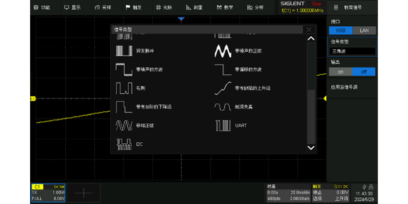 教育工作者和学生们能够借助SAG1021I或SIGLENT的其它信号源产品,快速生成多样化的教学波形和实验信号,无论是基础的波形理解还是复杂的实验分析,都能轻松实现,让教学与实验更加得心应手。
