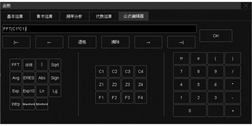 4条独立的Math波形,支持20多种常用数学运算,除基本数学运算外,示波器还提供导数、积分、对数等代数运算,此外还支持公式编辑器自定义运算表达式,用于实现复杂的嵌套运算,数学运算波形和测量结果可用作其他数学运算的参数。