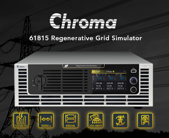 Chroma 61809/61812/61815机种为61800回收式电网模拟电源系列的最新产品。其藉由先进的数位控制系统及新一代热能处理技术,以仅3U高的机体空间达成最大15kVA输出功率、350V宽范围相电压输出、单/三相输出模式、DC100%功率能力、能源回收等硬体功能,此外输出电压爬升/跌落等暂态能力更进一步获得提升,为整体功率密度达业界领先之突破性产品,为使用者带来划时代的电源测试解决方案。