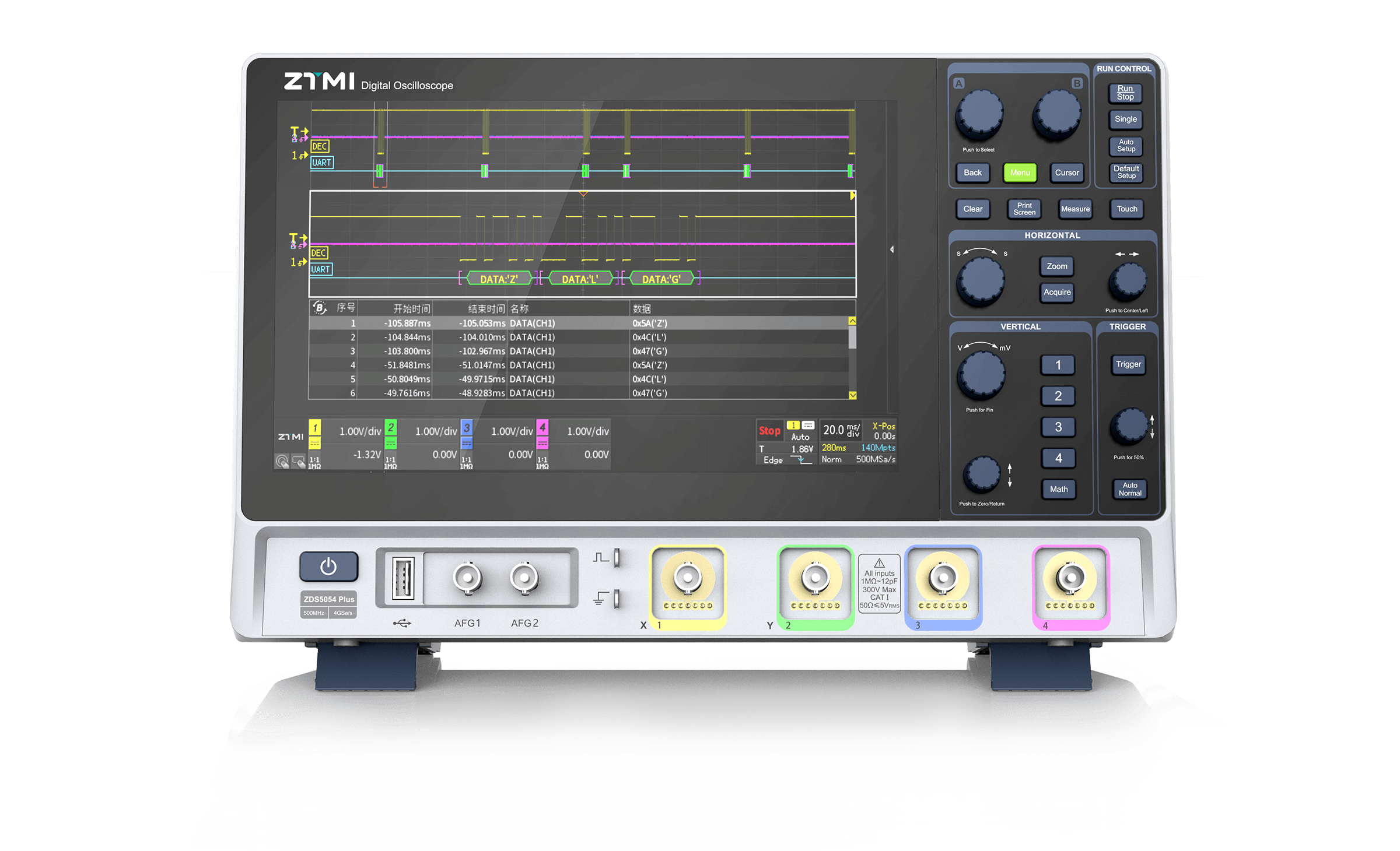 示波器波形刷新率越高,死区时间就越短,可以更快发现偶发性的异常信号。ZDS5054Pro示波器突破100万次/秒波形刷新率,让工程师快速发现异常信号。