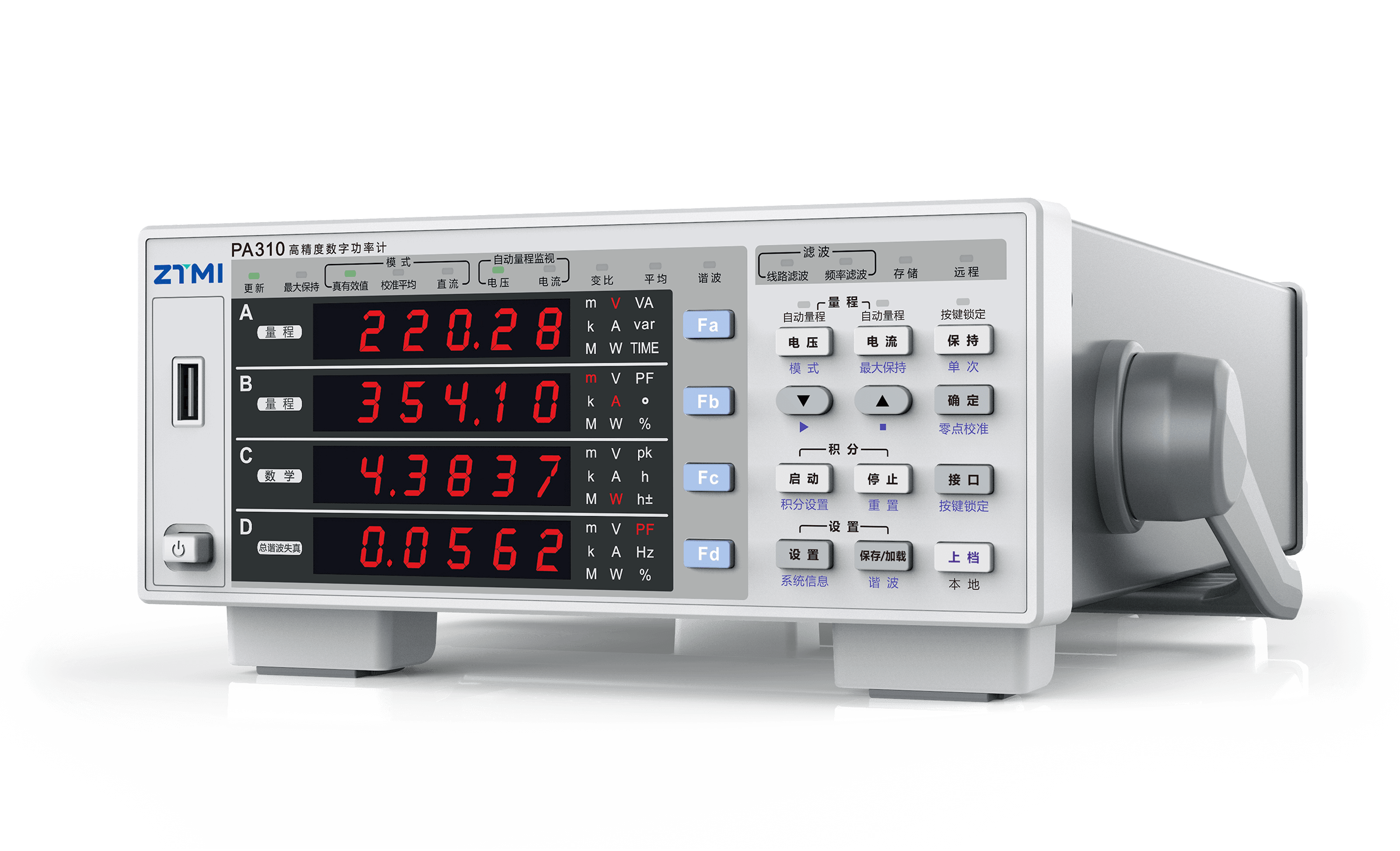 PA300系列数字功率计采用100MHz的同步采样时钟,保证任一个通道ADC的采样相位同步,误差在10ns以内,减小测量时U、I夹角的引入误差,保证有功功率及功率因数测量精度。